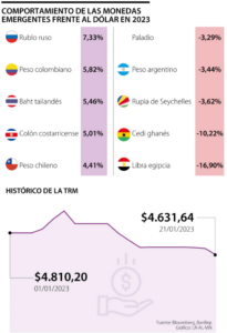 Peso colombiano, la segunda moneda que más se revalúa frente al dólar en el mundo