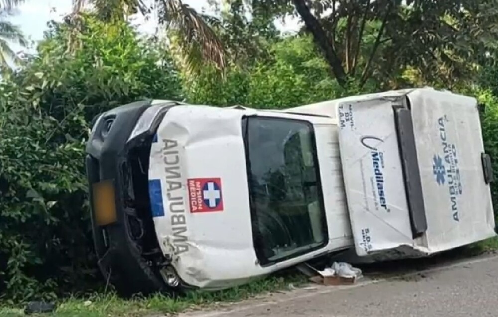 Un aparatoso accidente de tránsito ocurrió en la vía que de Neiva conduce al municipio de Villavieja, en el norte del departamento del Huila, y dejó dos personas heridas. En video quedó grabado el momento en que una ambulancia pierde el control y termina volcándose.
