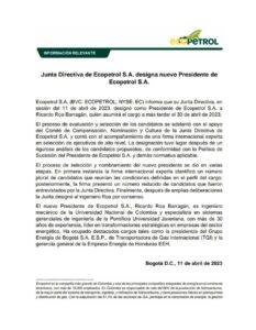Luego de que Felipe Bayón se despidiera de la empresa, la junta directiva de Ecopetrol nombró a Ricardo Roa Barragán como su nuevo presidente, y este Asumirá el cargo “a más tardar” el 30 de abril de este 2023.