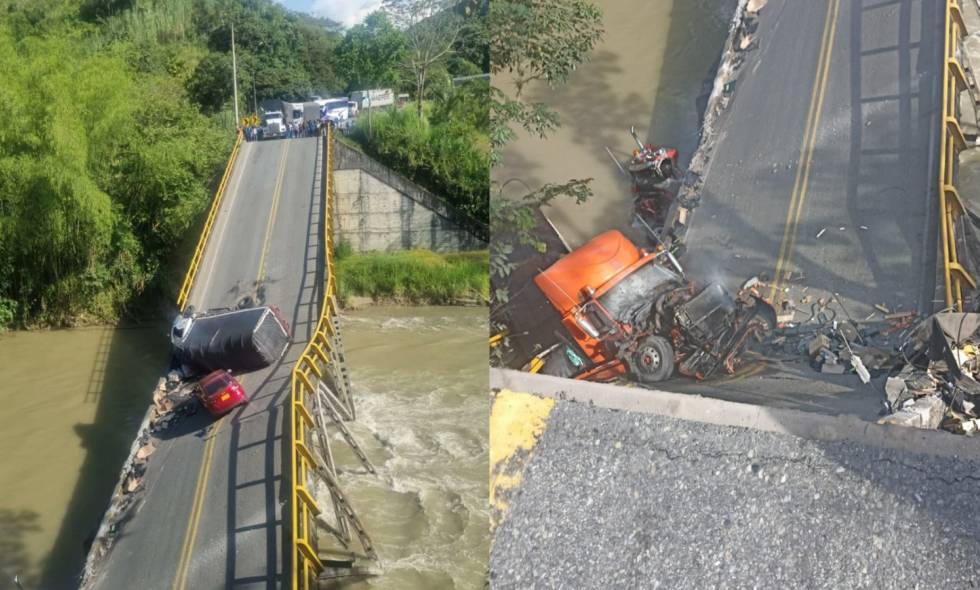 Este miércoles 12 de abril el puente sobre el río La Vieja, que conecta el departamento del Valle del Cauca con Quindío, se desplomó.