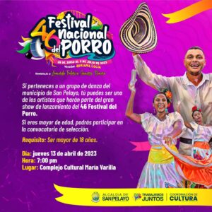 La organización del Festival del Porro, que se lleva a cabo en el municipio de San Pelayo-Córdoba, informó que las inscripciones para los interesados en participar en el concurso de bandas, permanecerán abiertas hasta el día jueves 20 de abril.