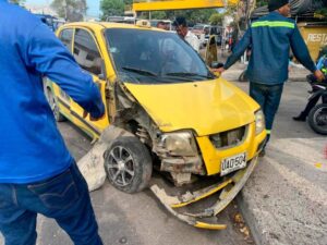 En las imágenes del hecho se ve al taxi, de placas UAO-504 y modelo 2007, sobre un andén y destruido en la parte delantera. Fue inmovilizado por los uniformados.