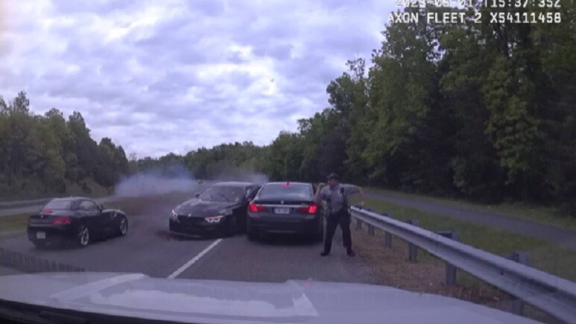 En Virginia, Estados Unidos, un agente de policía se salvó de ser atropellado, luego que un automóvil se saliera de control y golpeara a otro auto que estaba parado al borde de la carretera para un control de tráfico. Ocurrió el pasado lunes en el condado de Fairfax y el episodio quedó registrado por la cámara de la patrulla.
