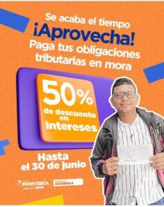 Los monterianos que quieran aprovechar estos descuentos pueden descargar su factura ingresando a https://taxation-monteria.gobiernoit.com/ords/f?p=150000:1:::::F_CDGO_CLNTE:23001 y pagar en la Oficina de Rentas o en los bancos aliados. También se puede pagar a través del botón PSE.