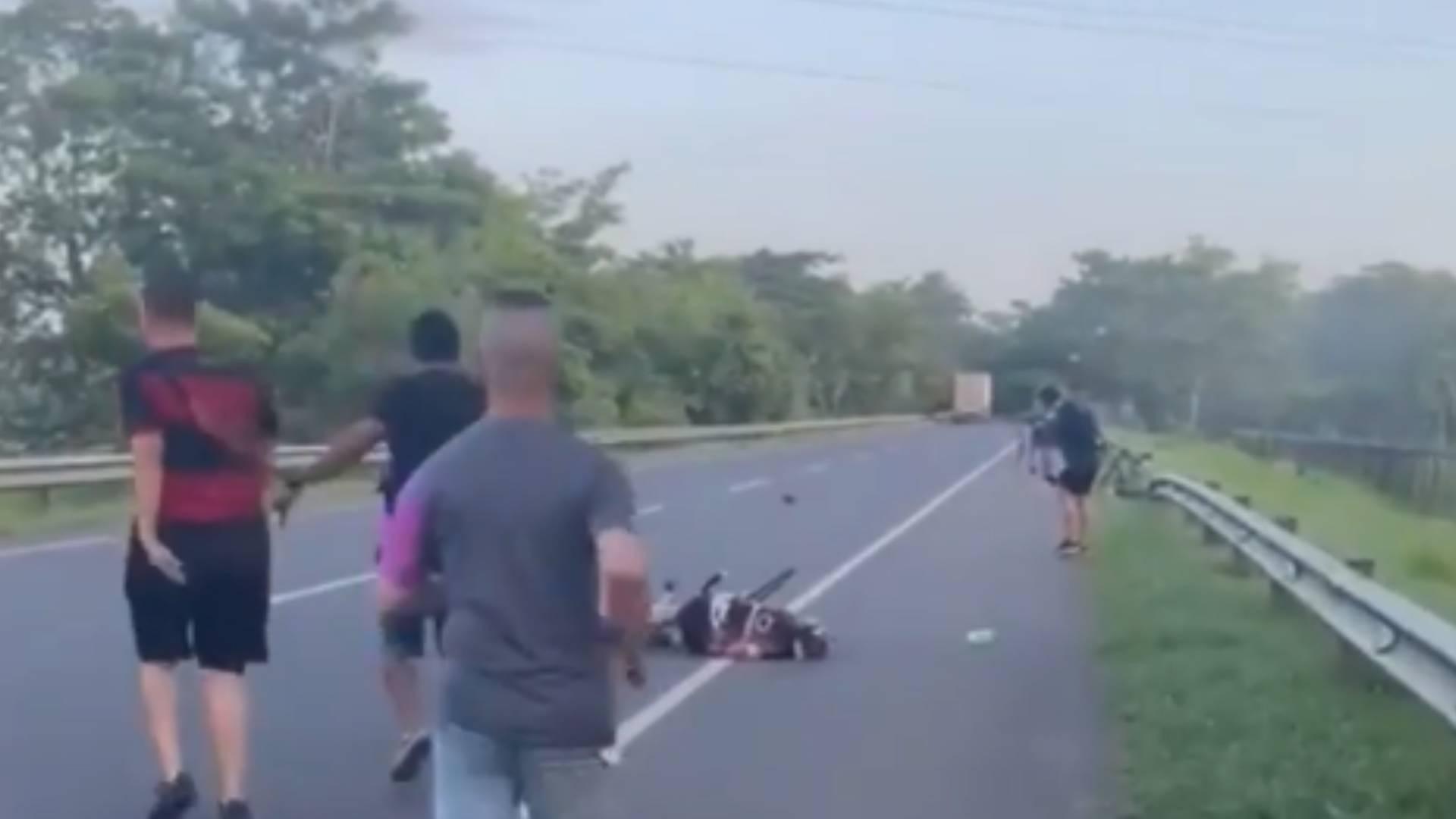 El hecho ocurrió a las 7:00 de la mañana de este jueves 20 de julio, en el kilómetro 8. Testigos lograron capturar el momento en que el ciclista quedó tendido en el asfalto mientras el conductor de un automóvil Renault Twingo de color gris se daba a la fuga.