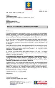 Fiscalía advierte sobre posibles atentados de las disidencias en varias zonas del país