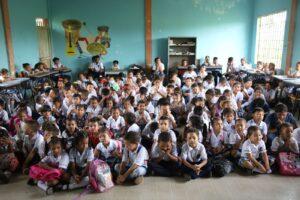 En coordinación con el Banco BBVA la Gestora Social Antonella Vega, hizo entrega de kits escolares a niños y niñas de la Institución Educativa Los Garzones, sede Boca de la Ceiba.