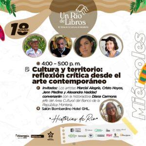 ¿Cómo participa el arte contemporáneo en las transformaciones sociales y culturales que sufren los territorios? Esta y otras preguntas las responderán cuatro destacados artistas cuyas obras abordan imaginarios naturales y populares: Marcial Alegría, Cristo Hoyos, Jenn Medina y Alexandra Haddad. Conversarán con la historiadora Diana Carmona, jefe del Área Cultural del Banco de la República Montería. Lugar: Salón Bombardino Hotel GHL.