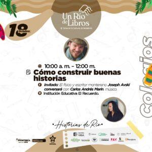 La creación de historias (de cómics, literarias, filosóficas, para cine, televisión o teatro; orales, gráficas, pictóricas) no se reduce solo al entretenimiento, sino que forma parte de nuestro proceso evolutivo como seres humanos. El escritor monteriano Joseph Avski, profesor de literatura y cultura latinoamericana en la Universidad de Missouri (EE. UU.), nos enseñará a construir historias subjetivas para construir realidades compartidas, a partir de su experiencia como doctor en Estudios Hispanos de Texas A&M y máster en Creación Literaria de la Universidad de Texas. Conversará con Carolina Caldera. Lugar: Institución Educativa El Recuerdo.