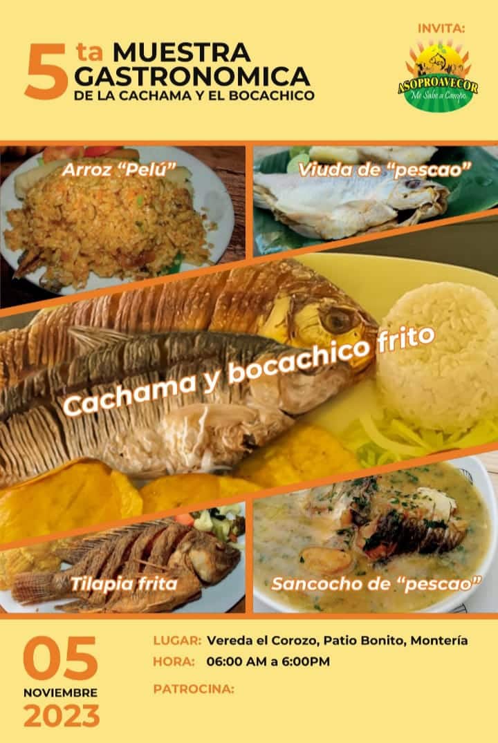 Este domingo 5 de noviembre, en la vereda El Corozo, jurisdicción del corregimiento Patio Bonito, zona rural de Montería, se llevará a cabo la quinta edición de la muestra gastronómica de la cachama y el bocachico.