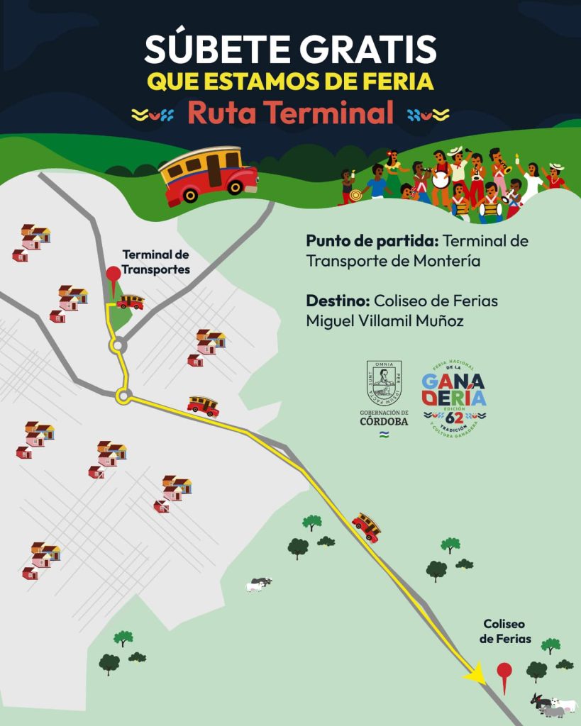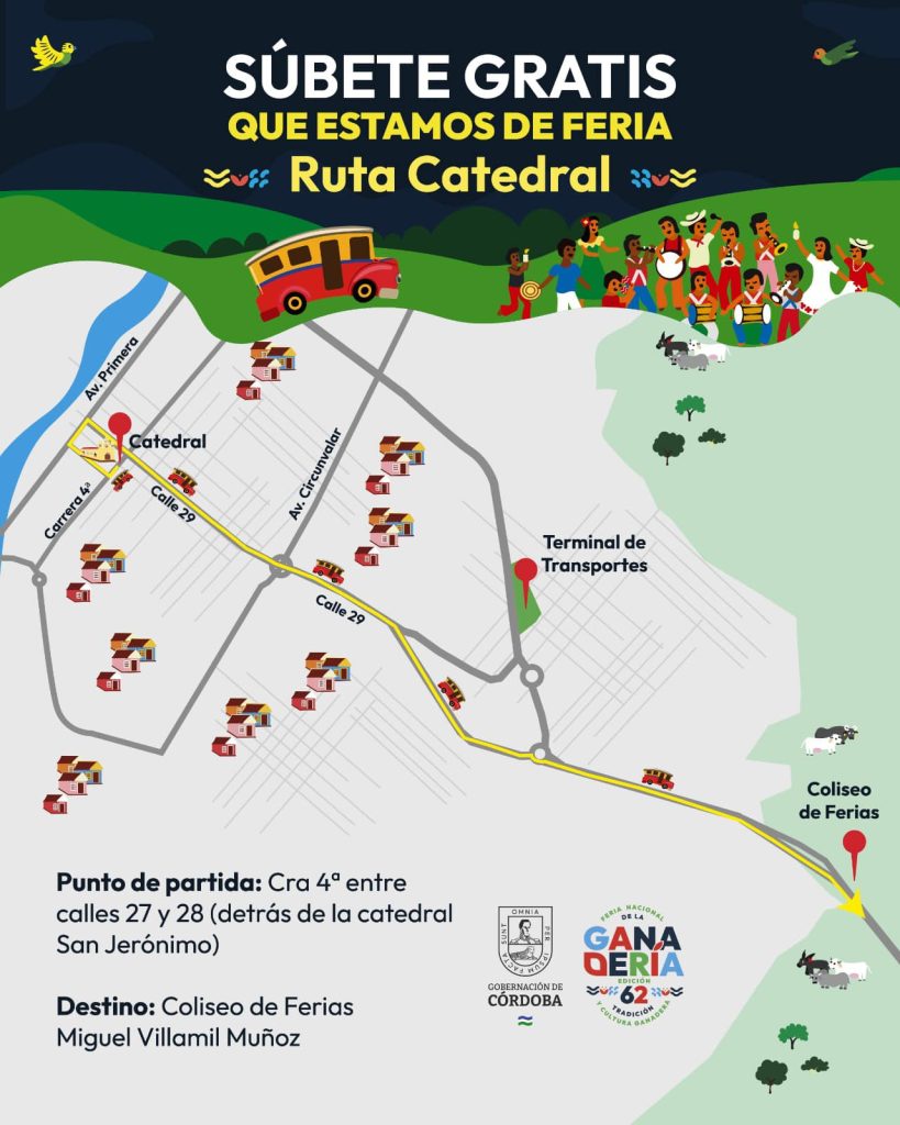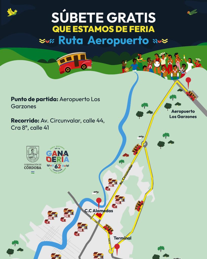 Los autobuses dispuestos por el mandatario departamental salen con un intervalo de 20 minutos y tienen paradas en la Catedral San Jerónimo de Montería, la Terminal de Transportes y el Aeropuerto Los Garzones.