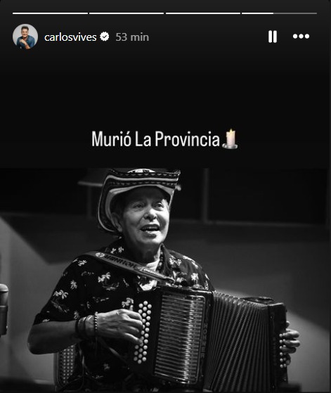 Carlos Vives, visiblemente afectado por la pérdida, expresó su pesar a través de redes sociales. “Murió La Provincia”, escribió el cantante, un mensaje que destaca la profunda conexión que ambos compartieron durante más de 30 años en los escenarios.