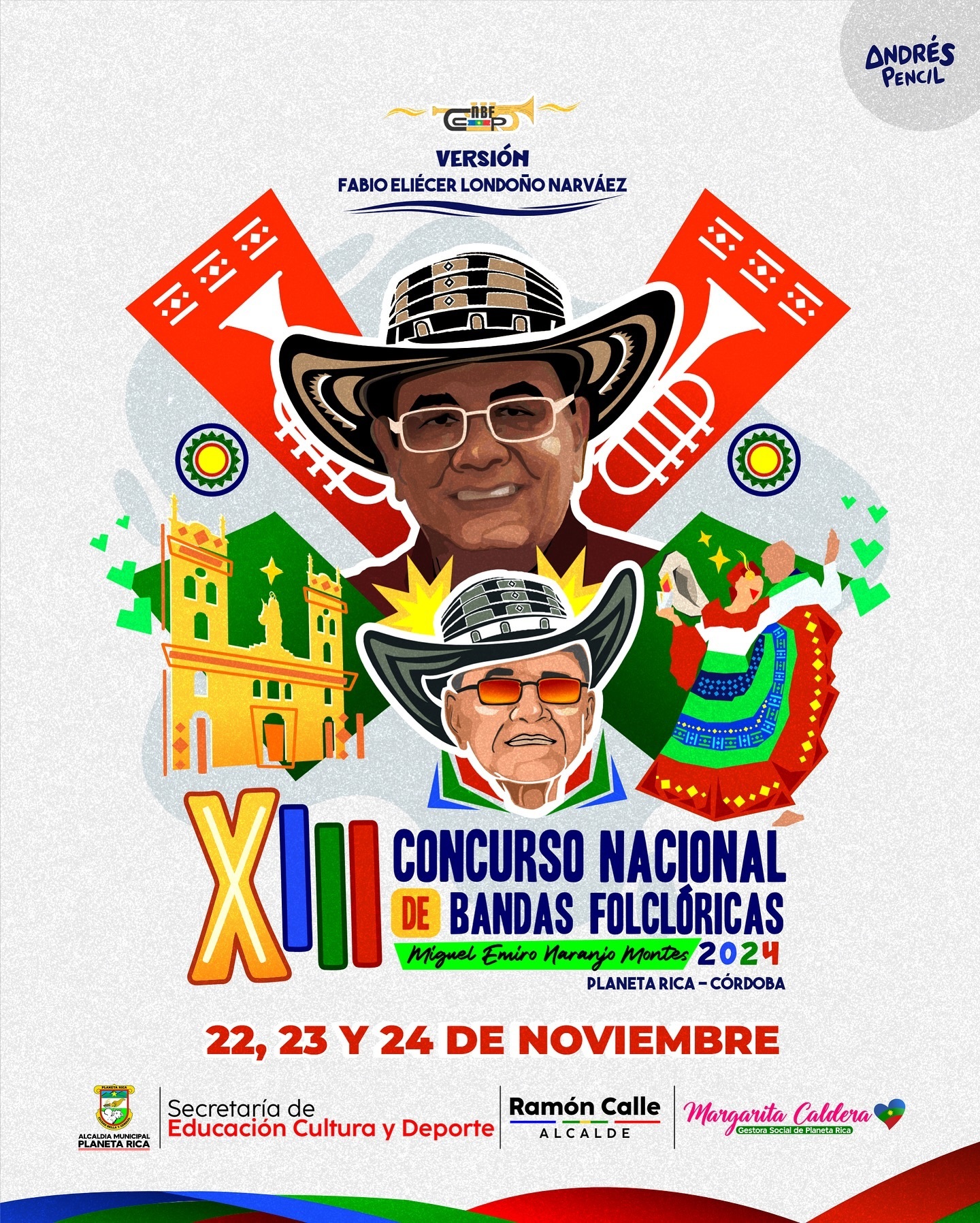 El folclor y la alegría toman el protagonismo en Planeta Rica con la inauguración de la 13.ª versión del Concurso Nacional de Bandas Folclóricas ‘Miguel Emiro Naranjo’, un evento que celebra la música tradicional de la región y que este año rinde homenaje al maestro Fabio Eliecer Londoño.