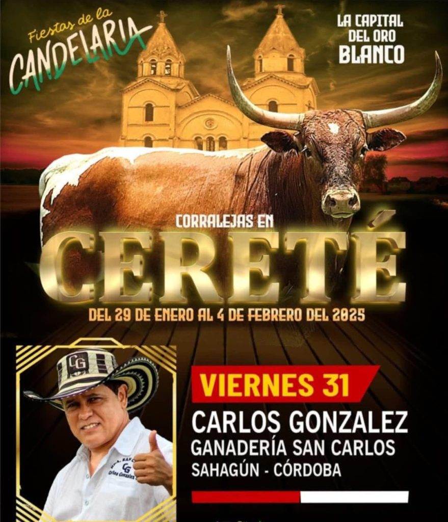 El viernes, el ruedo de Cereté se vestirá de gala con la presencia de Carlos González, quien estará al frente de la ganadería San Carlos, también originaria de Sahagún. Una tarde llena de destreza y valentía, que hará vibrar a todos los aficionados.