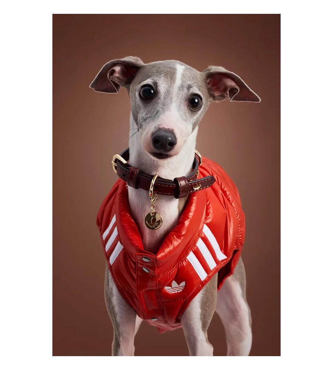 La campaña oficial muestra a diferentes animales luciendo prendas como chaquetas, chalecos acolchados, abrigos y cortavientos, todos con el icónico logo del trébol y las clásicas tres rayas de la marca deportiva.