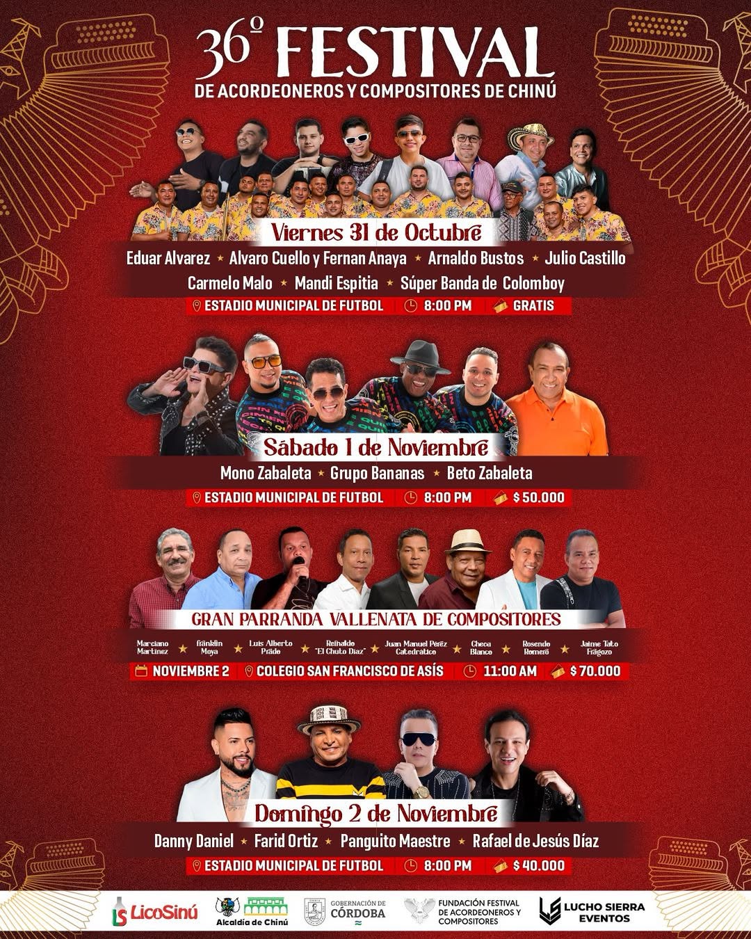 Del 31 de octubre al 2 de noviembre, todos los caminos conducen a Chinú para disfrutar del 36° Festival de Acordeoneros y Compositores, una de las celebraciones más esperadas del Caribe colombiano. Este tradicional evento promete tres noches cargadas de música, talento y alegría, exaltando el folclor y las raíces vallenatas que identifican a la región.
