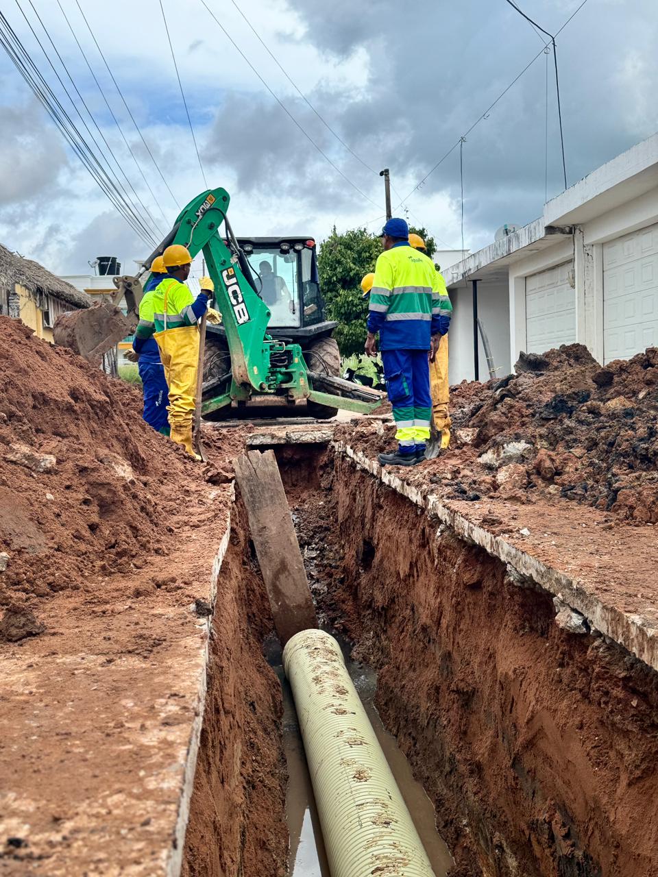 Los trabajos incluyen el reemplazo de tuberías de concreto por una nueva línea de PVC de 16 pulgadas, lo que permitirá optimizar la operación del sistema y mejorar las condiciones de salubridad de los habitantes.