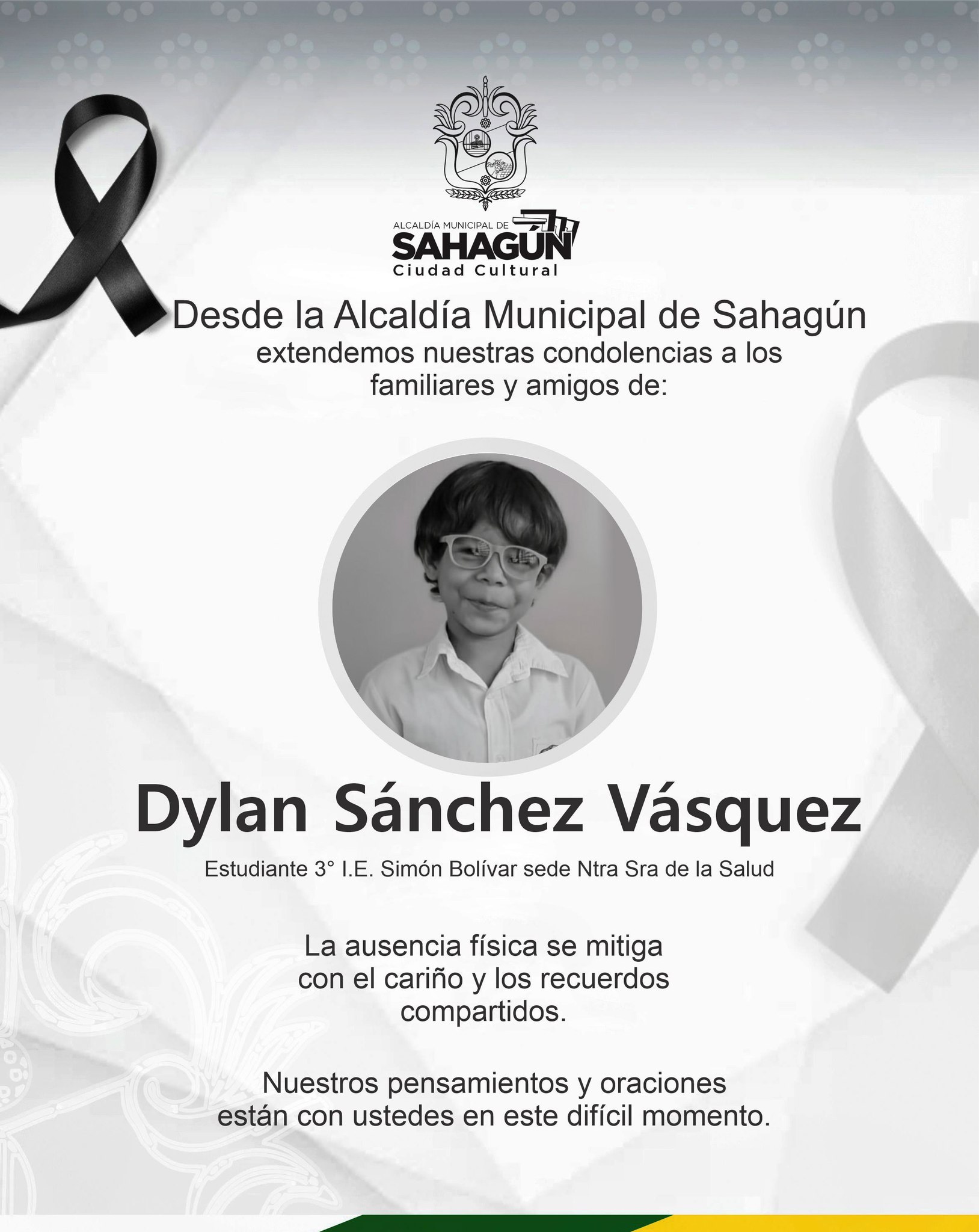 La noticia ha generado una ola de tristeza y solidaridad en la comunidad educativa, que recuerda a Dylan por su alegría, entusiasmo y cariño. Desde la Administración Municipal de Sahagún y la institución donde estudiaba, expresaron un emotivo mensaje de despedida: “Con el corazón encogido y una tristeza profunda que nos embarga, la Administración Municipal de Sahagún y la comunidad de la Institución Educativa Simón Bolívar, en su sede Nuestra Señora de la Salud, lamentamos con inmenso dolor el fallecimiento de nuestro querido estudiante Dylan Sánchez Vásquez, a sus 8 años de edad.”