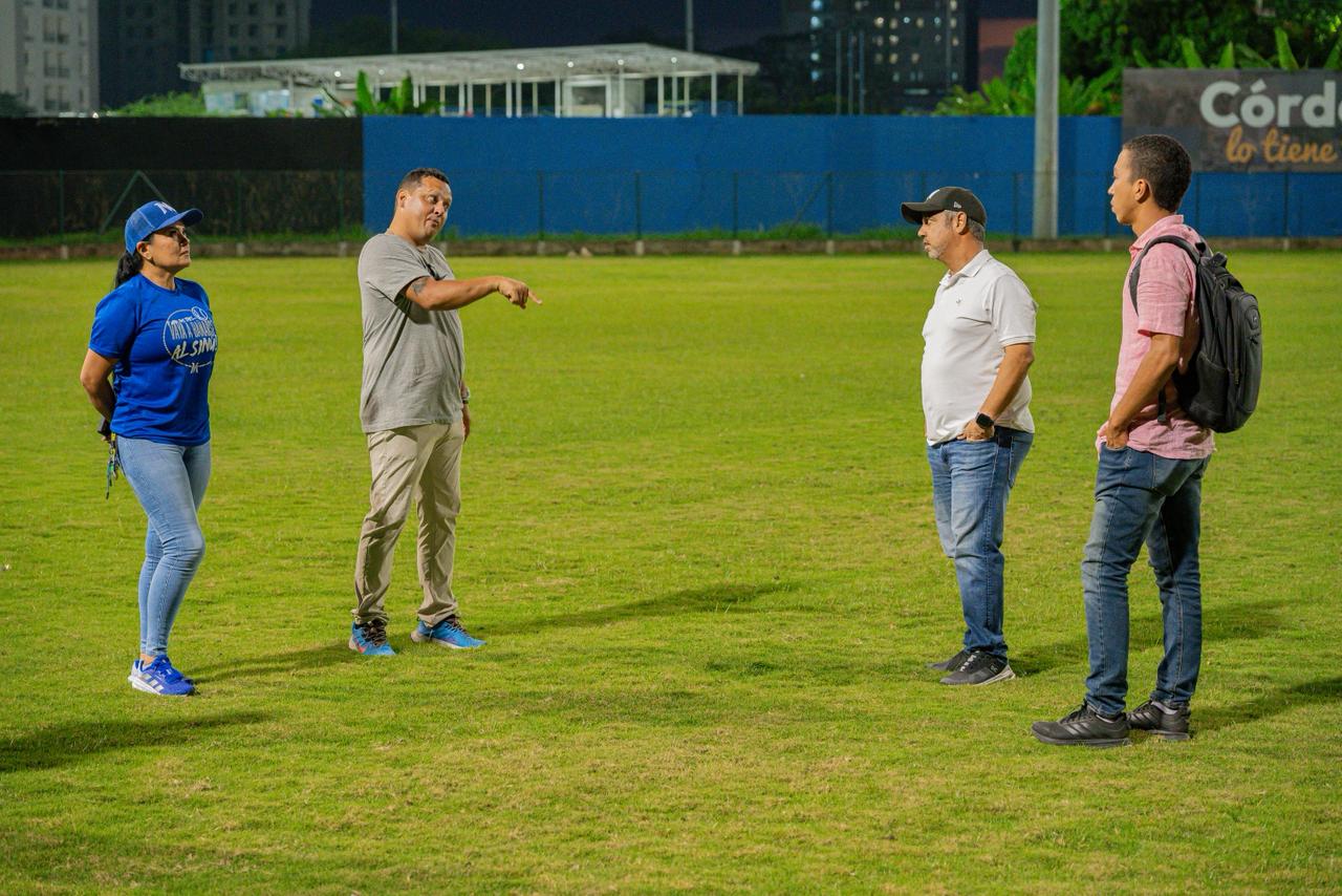 Durante el recorrido, Miranda subrayó la importancia de revisar el estado de las luminarias actuales, uno de los puntos clave para garantizar las condiciones óptimas de juego en competencias nocturnas. Asimismo, destacó el trabajo de recuperación y mejoramiento que se realiza en la grama del diamante, una intervención que avanza a buen ritmo.