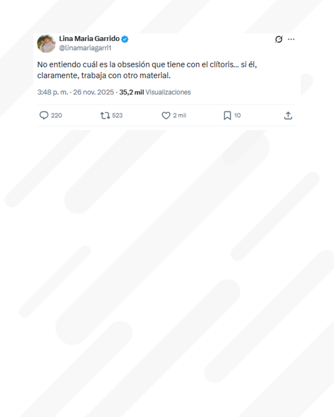 “No entiendo cuál es la obsesión con el clítoris… si él, trabaja con otro material”, Garrido a Petro