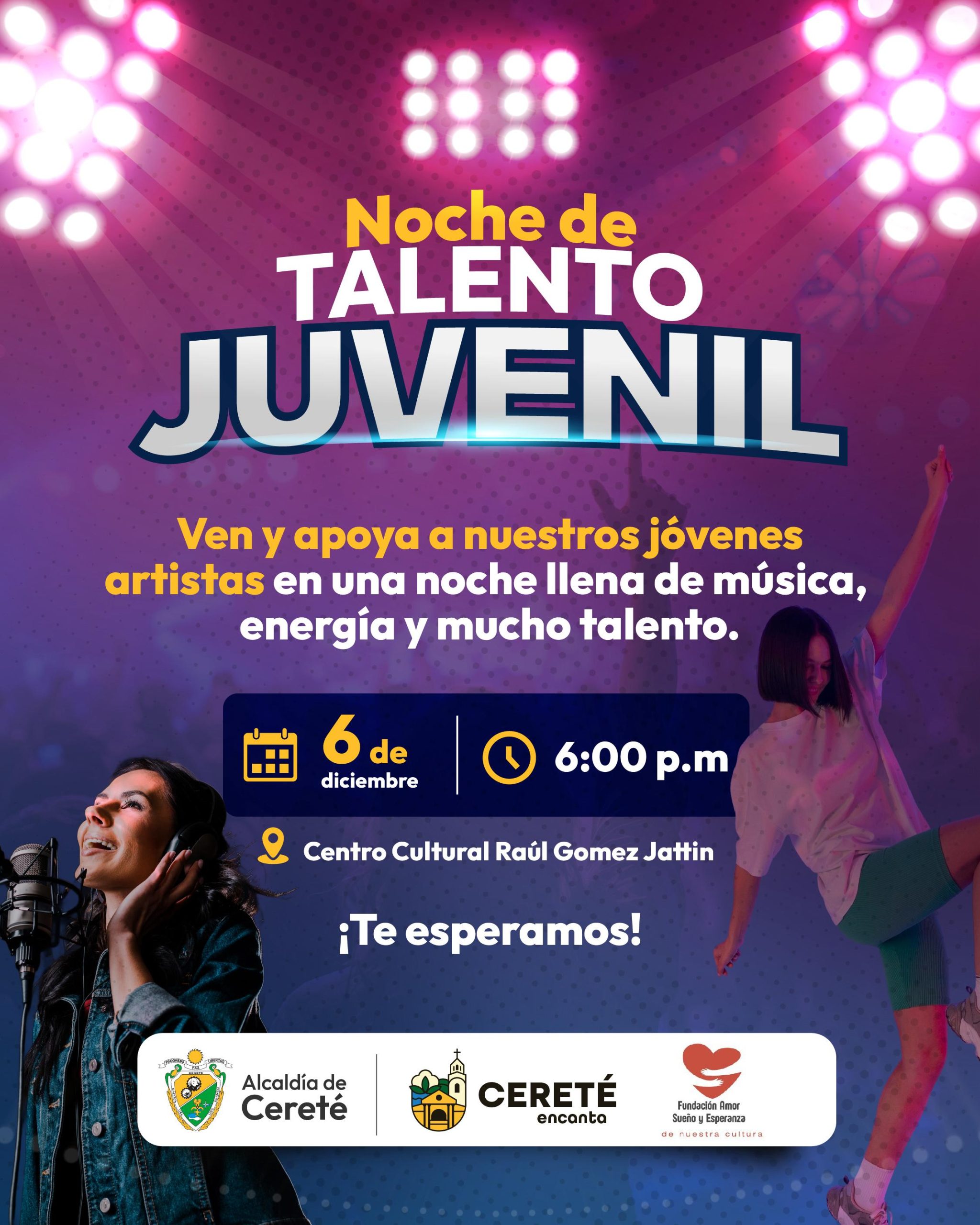 El municipio de Cereté se prepara para celebrar la Noche de Talento Juvenil, un evento que busca resaltar las habilidades artísticas de los jóvenes y brindarles un espacio para demostrar su creatividad, música, baile y expresiones culturales.