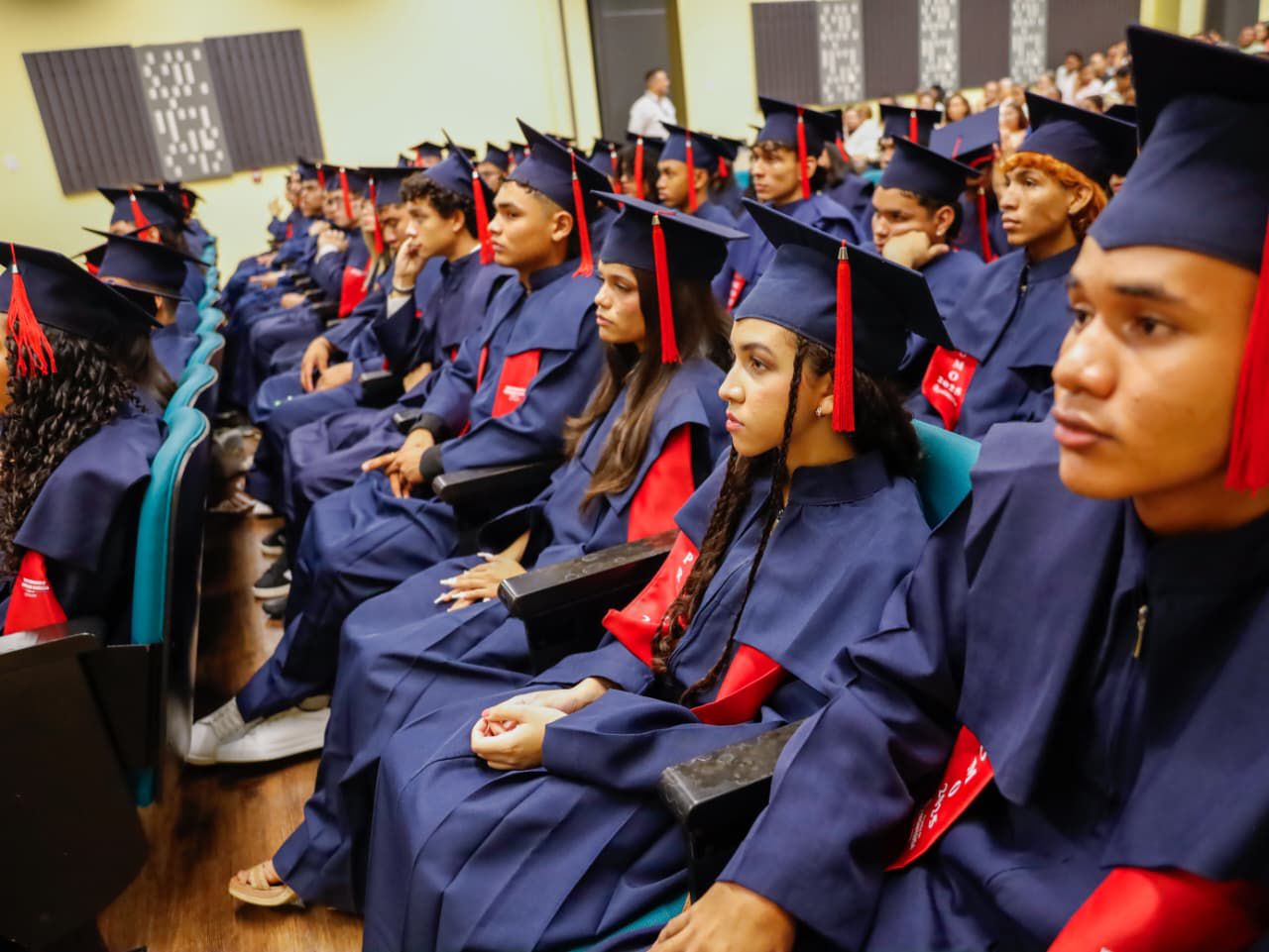 La ceremonia exaltó a 64 jóvenes, uno por cada institución educativa oficial de Montería, provenientes tanto de la zona urbana como rural, quienes además fueron reconocidos por haber vivido recientemente una experiencia académica y cultural en España, como premio a su disciplina, constancia y excelencia.