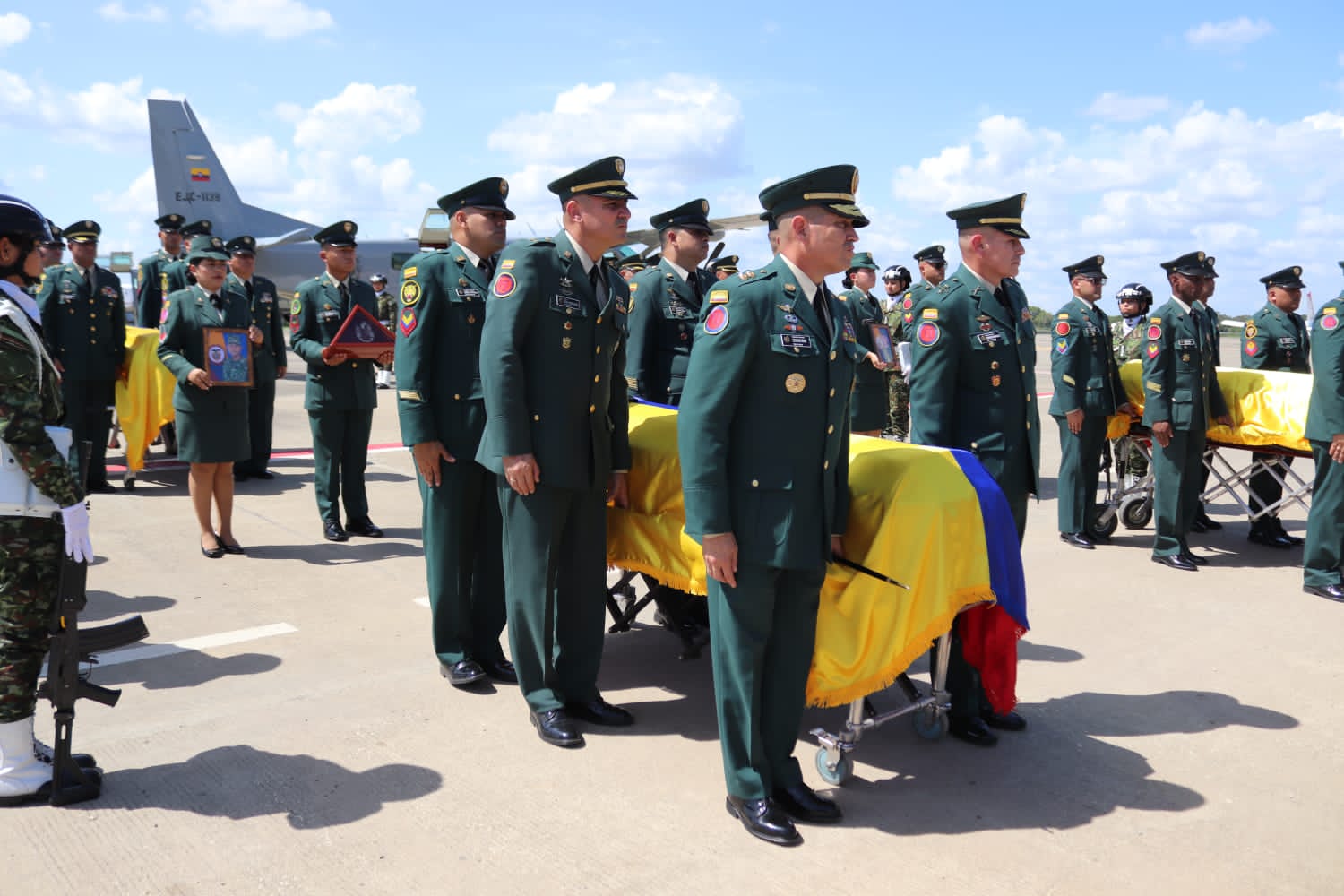 El solemne acto honró la memoria de los uniformados que perdieron la vida en cumplimiento del deber, resaltando su valentía, compromiso y servicio a la patria. Durante la ceremonia, la institución militar expresó un mensaje de solidaridad y acompañamiento a las familias de los soldados caídos, reiterando su apoyo en este difícil momento de dolor.