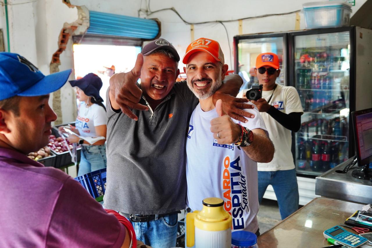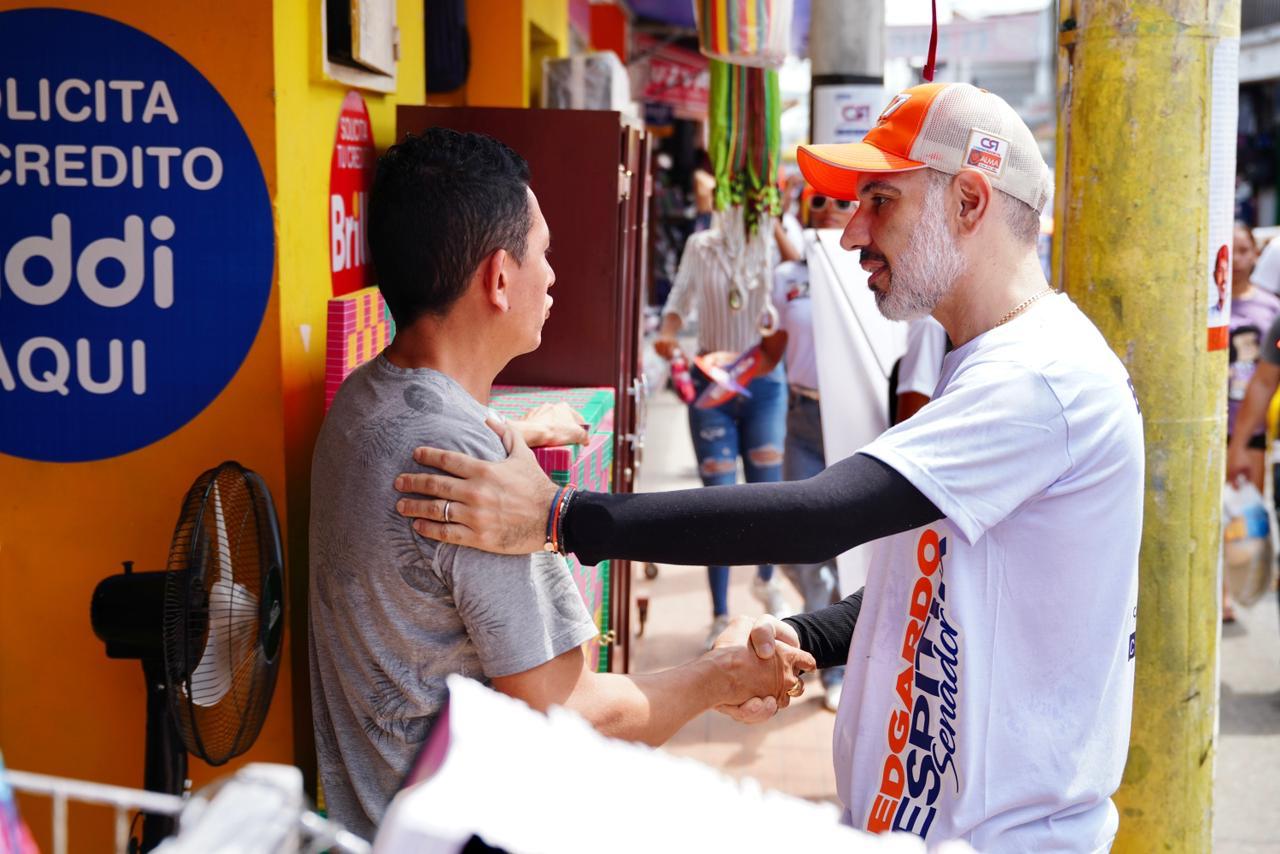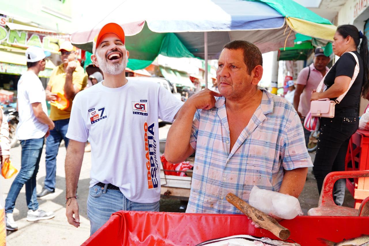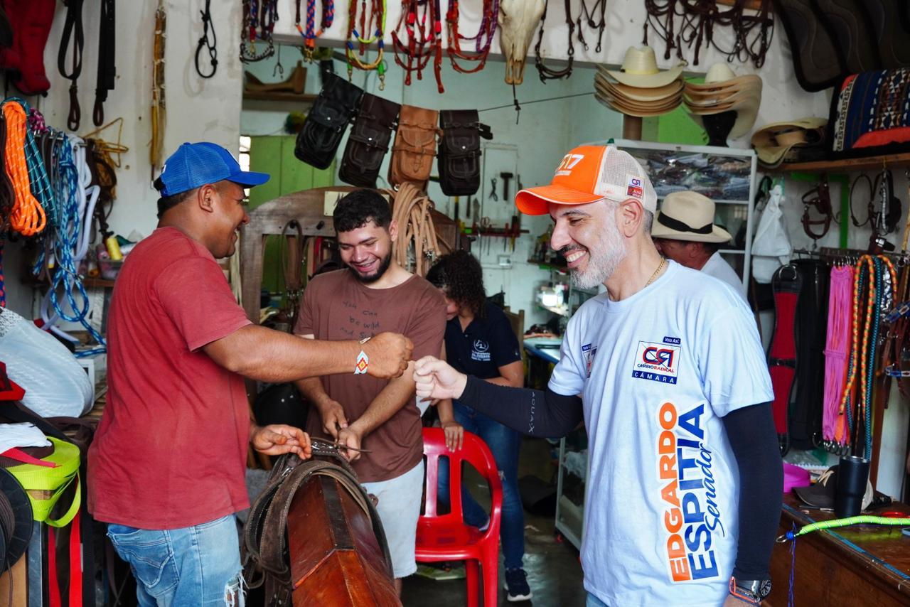 El candidato al Senado Edgardo Espitia inició su jornada política en Planeta Rica con un recorrido por el sector comercio, acompañado del exsecretario de Gobierno del municipio, José Berrocal, y un grupo de líderes locales. Durante varias horas, Espitia interactuó con comerciantes formales e informales, compartiendo su mensaje y estableciendo un diálogo cercano con la comunidad.
