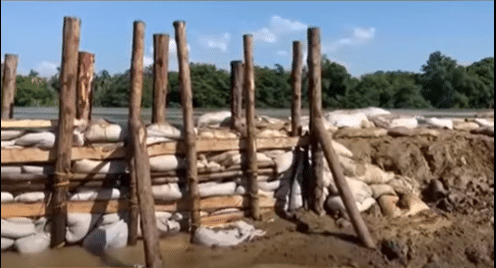 La labor se extendió durante cuatro jornadas continuas, con apoyo de materiales suministrados por la Alcaldía de Lorica. Los voluntarios construyeron una barrera con madera y sacos rellenos de balasto para frenar el ingreso del agua a través de la fisura.