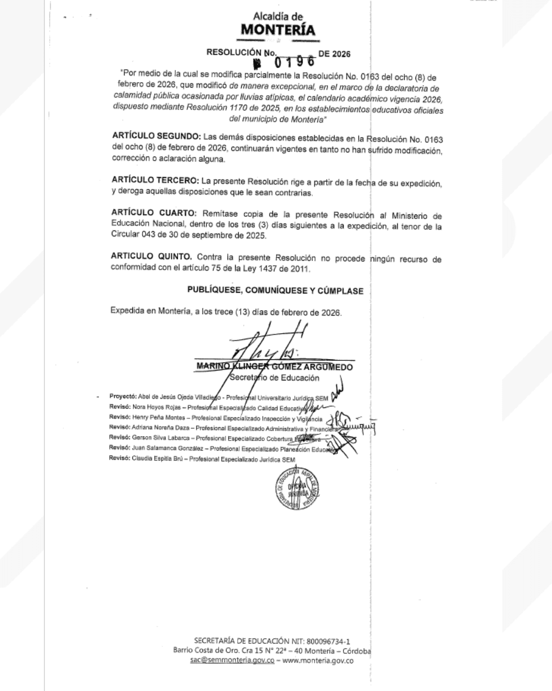 Giro en el calendario escolar de Montería en plena emergencia. La Alcaldía decidió modificar la resolución que había adelantado las vacaciones de docentes y estudiantes del sector oficial, tras un nuevo análisis jurídico y la expedición de una directriz actualizada por parte del Ministerio de Educación Nacional.