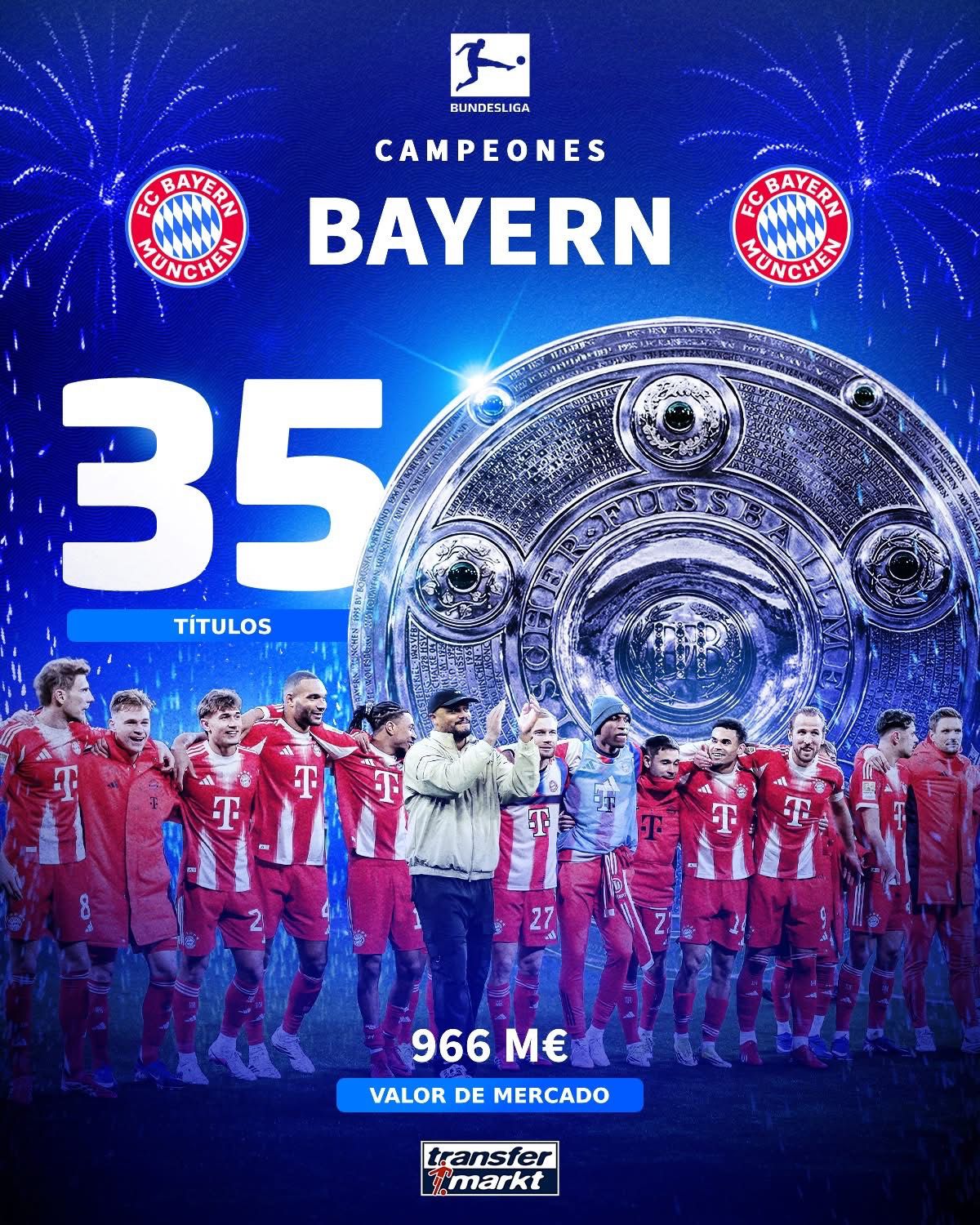 Con esta victoria, el Bayern llegó a su campeonato número 35 y dejó sin opciones a sus rivales, sacando una ventaja imposible de remontar en la tabla.