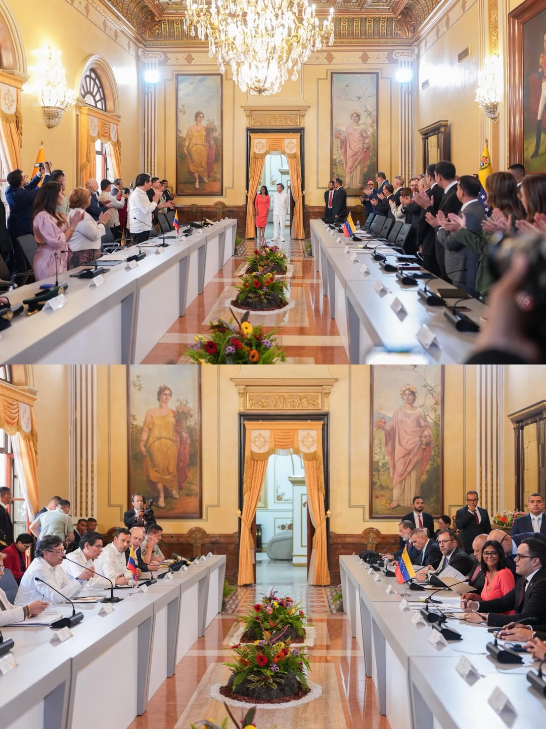 Desde el Palacio de Miraflores, Rodríguez aseguró que este encuentro responde a la necesidad de “unión e integración” entre los pueblos, luego de la firma del acta final de la Comisión de Vecindad e Integración, donde participaron delegaciones de ambos gobiernos.
