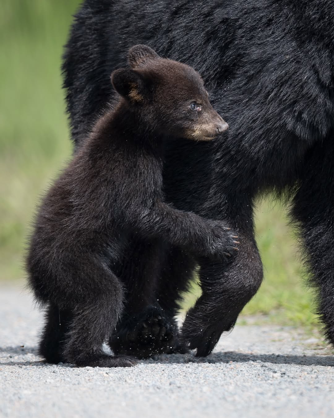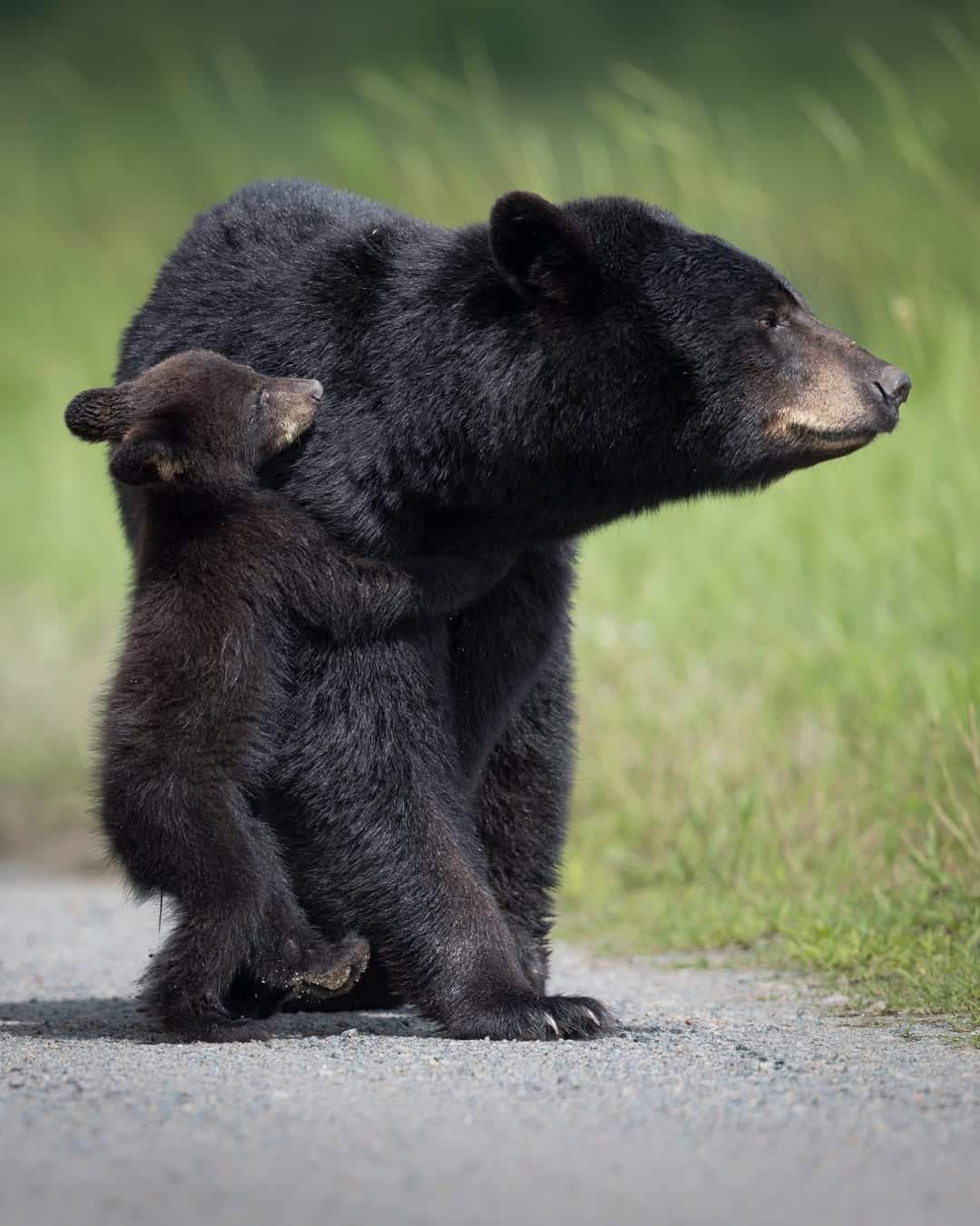 ¡Qué ternura! Cachorro de oso no suelta a su madre
