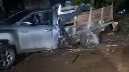 La explosión se registró en la madrugada de este lunes 27 de abril, cuando la camioneta, que al parecer transportaba varias cargas explosivas, detonó de forma anticipada en plena vía. El estallido generó una fuerte onda expansiva que impactó al menos diez viviendas y parte de un colegio en la zona.