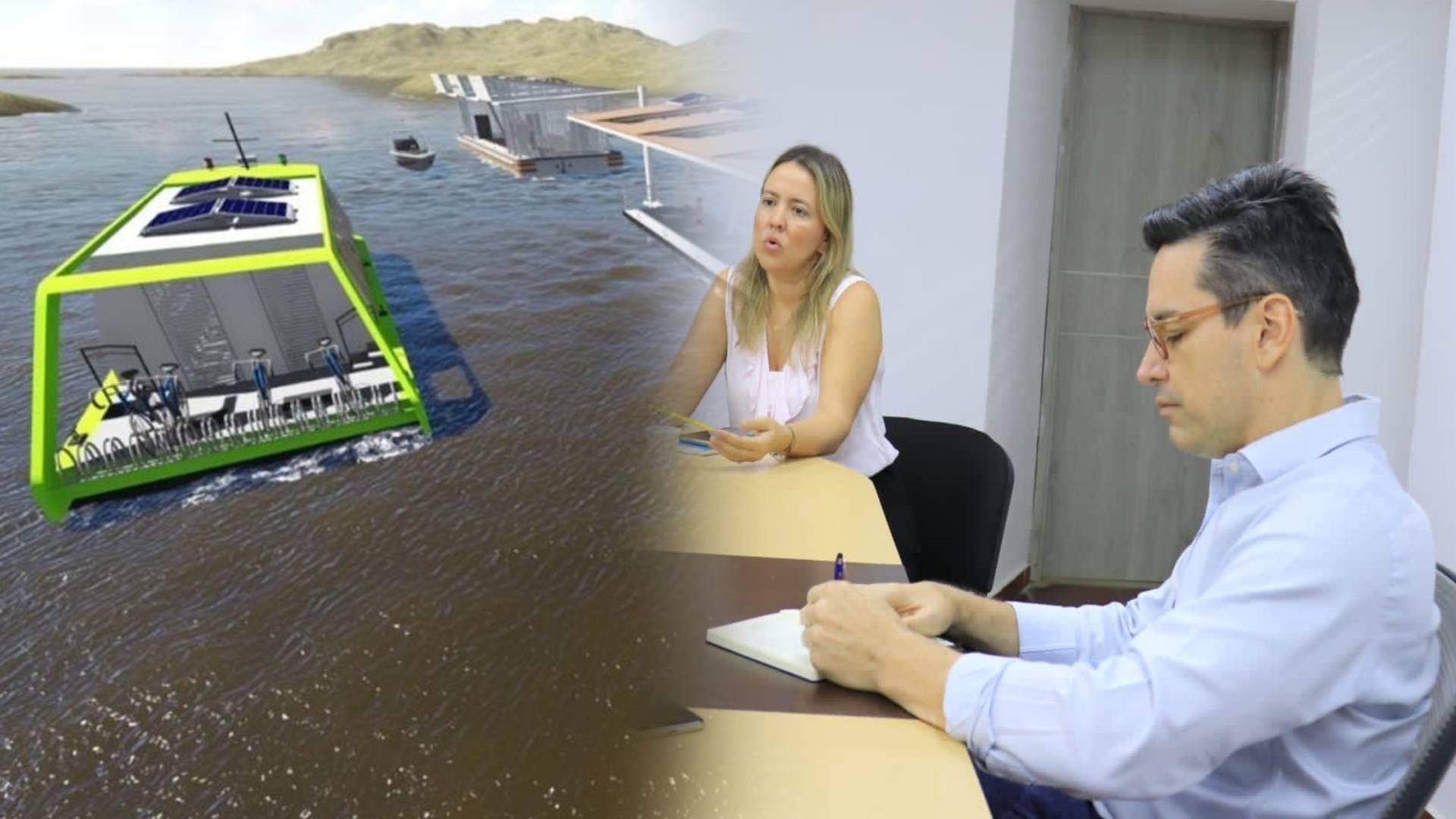 El alcalde de Montería, Carlos Ordosgoitia Sanin, junto con la secretaria de Infraestructura, Mónica Severiche, y la jefe de la…