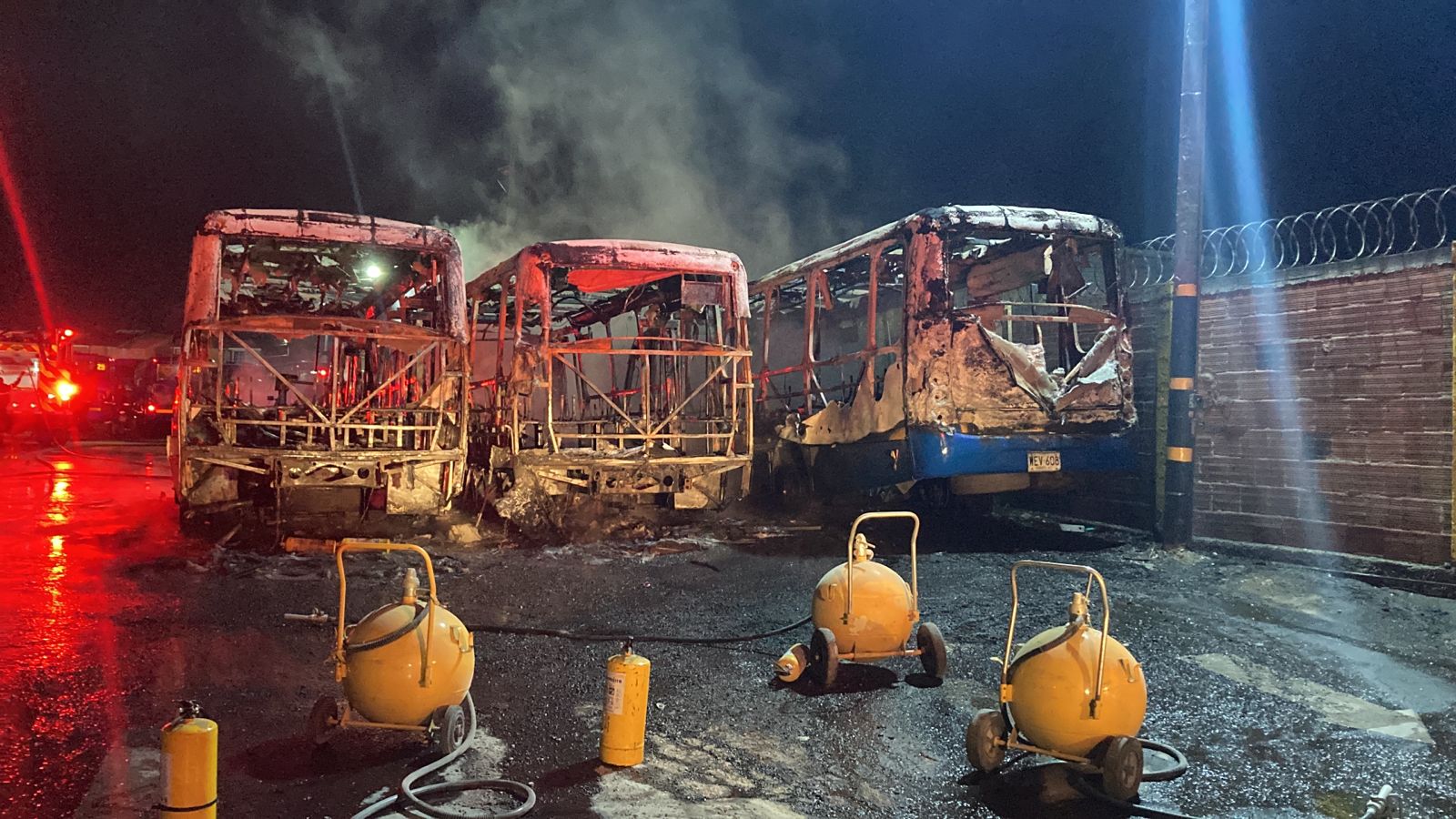 Un herido y siete buses quemados dejó incendio en parqueadero