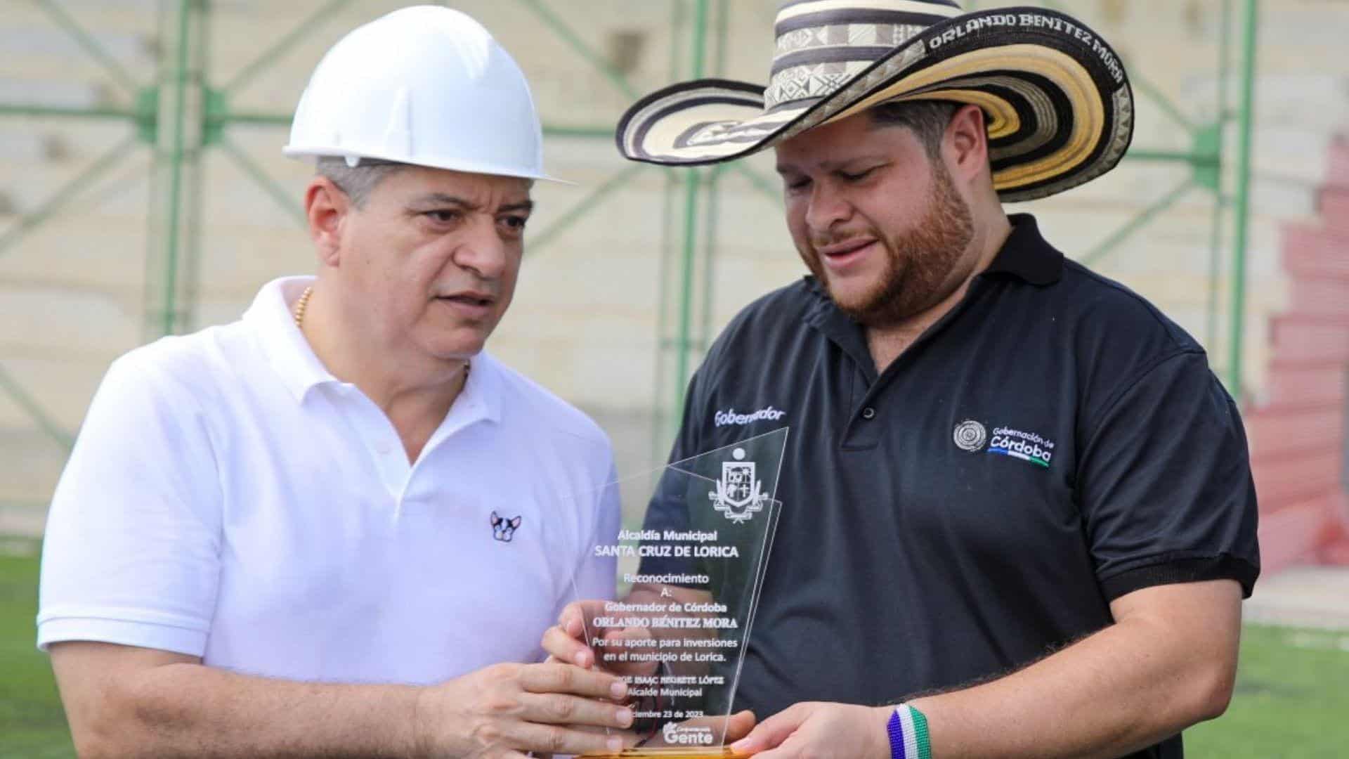 Alcalde de Lorica entregó placa al gobernador por su respaldo en proyectos
