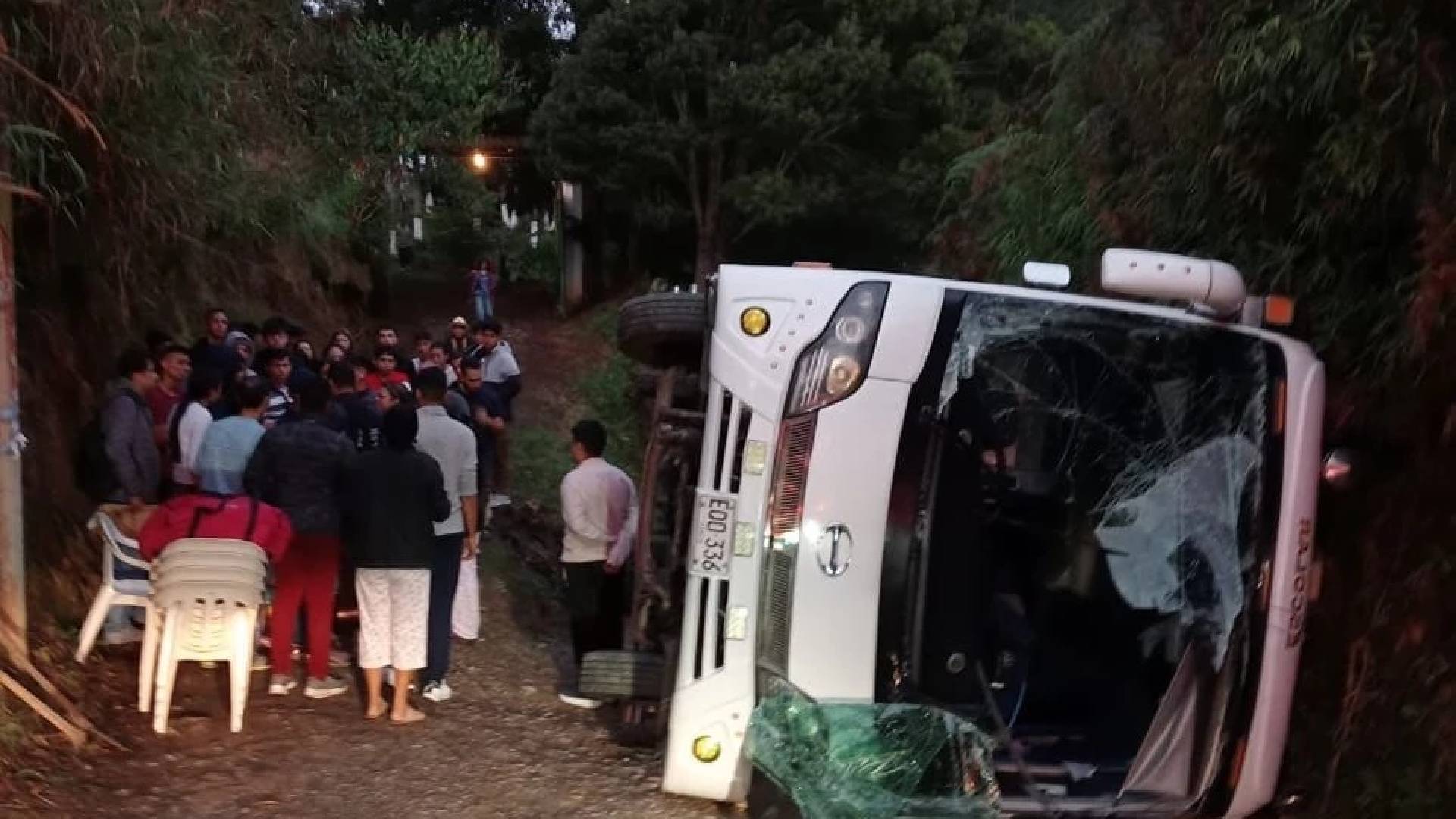 Nueve personas lesionadas dejó el volcamiento de un bus